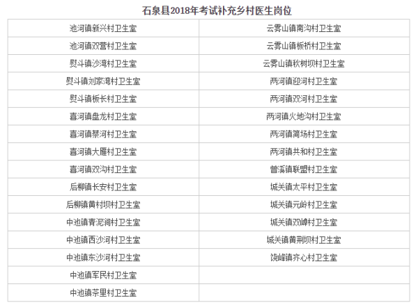 安康新聞網(wǎng)訊 根據(jù)《安康市衛(wèi)生和計(jì)劃生育局關(guān)于印發(fā)安康市2018年考試補(bǔ)充鄉(xiāng)村醫(yī)生實(shí)施方案的通知》(安衛(wèi)計(jì)發(fā)〔2018〕26號(hào))精神,石泉縣決定在全縣范圍內(nèi)定崗(附件1)公開招考補(bǔ)充一批鄉(xiāng)村醫(yī)生。現(xiàn)公告如下: