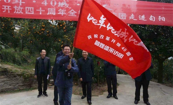 旬河入漢幾道彎,朝陽(yáng)初灑太極城。10月24日,"40年 40城 40人"西部網(wǎng)慶祝改革開(kāi)放四十周年全媒體采訪團(tuán)來(lái)到了旬陽(yáng),在呂河鎮(zhèn)冬青村劉永濤的農(nóng)家小院里,采訪團(tuán)代表魏永賢從旬陽(yáng)縣委常委、宣傳部部長(zhǎng)邱德剛手里接過(guò)團(tuán)旗,開(kāi)啟了對(duì)太極城改革開(kāi)放以來(lái)發(fā)展成就的探尋之路。