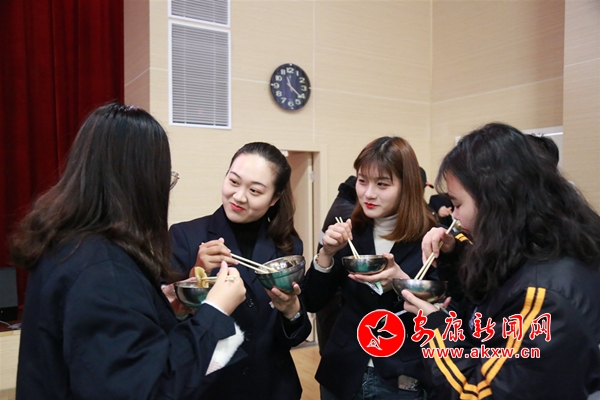 “冬至到、餃子香、團(tuán)情濃!”12月22日上午,中國(guó)鐵路西安局集團(tuán)有限公司安康機(jī)務(wù)段在運(yùn)動(dòng)吧組織家在異地的團(tuán)員青年開(kāi)展“冬至有溫暖、團(tuán)情常相伴”主題團(tuán)日活動(dòng)。52名團(tuán)員青年匯聚在一起,搟面、拌餡、包餃子……忙得不亦樂(lè)乎。兩個(gè)小時(shí)后,一盤(pán)盤(pán)熱氣騰騰的餃子端上餐桌,吃著自己親手包的餃子,大家紛紛表示“這次活動(dòng),既暖胃又暖心,就和在家里一樣!”(通訊員 黃志偉 羅超 圖/文)Yn5安康新聞網(wǎng)