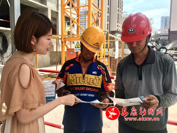 在高新區(qū)部分建筑工地,安康市和漢濱區(qū)人社部門通過擺放咨詢臺、放置展板、發(fā)放印制的宣傳資料、現(xiàn)場答疑等形式,對《社會保險法》《工傷保險條例》在維護職工權(quán)益方面的重要意義、工傷保險參保繳費政策、工傷認(rèn)定申辦程序以及工傷保險待遇等方面進行宣傳。