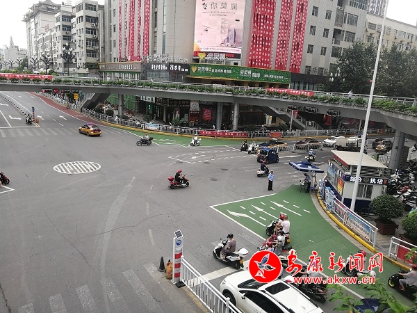 8月2日,記者在中心城區(qū)馬坎十字發(fā)現(xiàn)了道路新增綠色引導(dǎo)區(qū)域,記者從漢濱交警大隊(duì)了解到,目前城區(qū)除了馬坎十字之外,中心廣場(chǎng)十字、一橋橋南十字,東堤十字的三車等待區(qū)也在同步施劃中,警示車輛各行其道。gJv安康新聞網(wǎng)