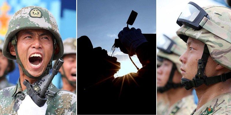 10:00,一只知了落在正在進(jìn)行軍姿訓(xùn)練的戰(zhàn)士臉上。