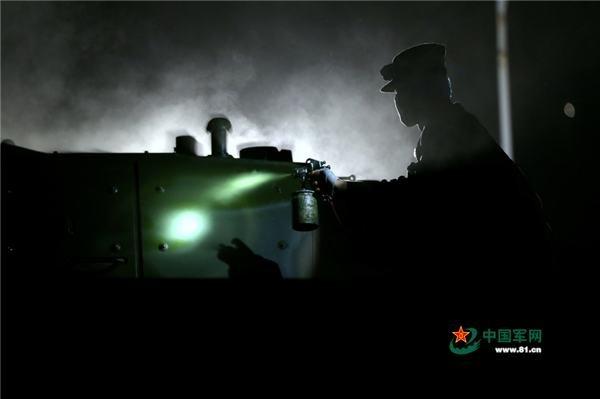 1:00,一名戰(zhàn)士正在為戰(zhàn)車(chē)涂裝。為了保障備戰(zhàn)閱兵活動(dòng),該方隊(duì)官兵吃住在車(chē)場(chǎng),連續(xù)奮戰(zhàn)3天3夜,完成了原計(jì)劃8天的涂裝工作量。