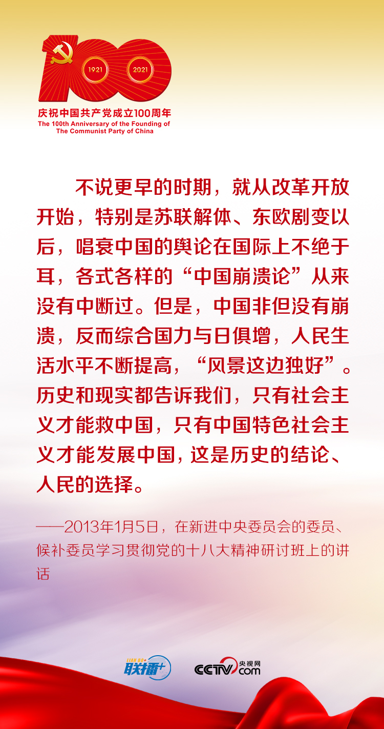 中國特色社會主義既堅持了科學(xué)社會主義的基本原則,又根據(jù)時代條件不斷展現(xiàn)其鮮明的中國特色。黨的十八大以來,習(xí)近平總書記在不同場合生動回答了中國特色社會主義為什么好這個重大問題。央視網(wǎng)《聯(lián)播+》特梳理總書記講話要點,與您一起學(xué)習(xí)領(lǐng)悟走中國特色社會主義道路的正確性,堅定走中國特色社會主義道路的信心與決心。