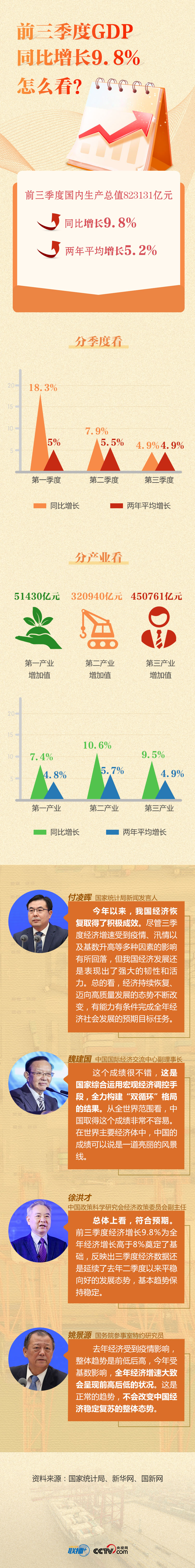 國家統(tǒng)計局近日發(fā)布2021年前三季度國民經濟運行情況。初步核算,今年前三季度國內生產總值823131億元,同比增長9.8%。分季度看,一季度同比增長18.3%,二季度同比增長7.9%,三季度同比增長4.9%。分產業(yè)看,前三季度第一產業(yè)增加值同比增長7.4%,第二產業(yè)增加值同比增長10.6%,第三產業(yè)增加值同比增長9.5%。如何看待這份“成績單”?CQE安康新聞網(wǎng)