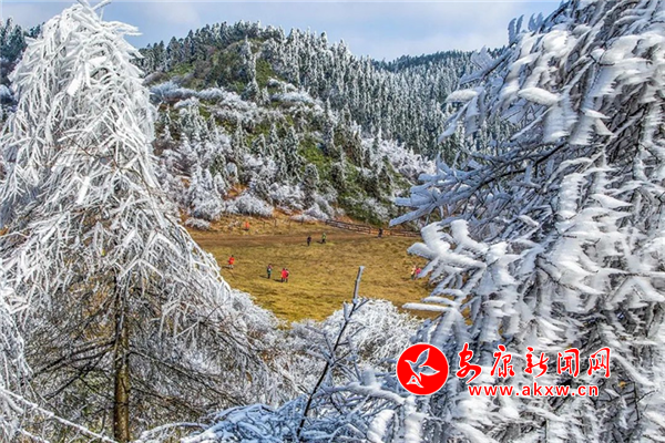 仙女山的霧淞,千姿百態(tài)、漫山遍野、晶瑩剔透,特別像能工巧匠精雕細(xì)刻的水晶工藝品。