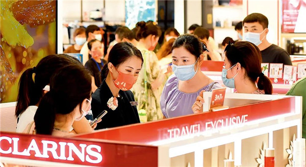 ▲ 2021年10月1日,游客在中免集團 ?谌赵聫V場免稅店采購免稅品 楊冠宇攝