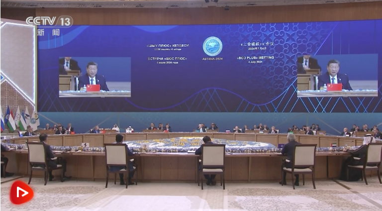 當?shù)貢r間7月4日下午,國家主席習近平在阿斯塔納出席“上海合作組織+”阿斯塔納峰會并發(fā)表題為《攜手構建更加美好的上海合作組織家園》的重要講話。