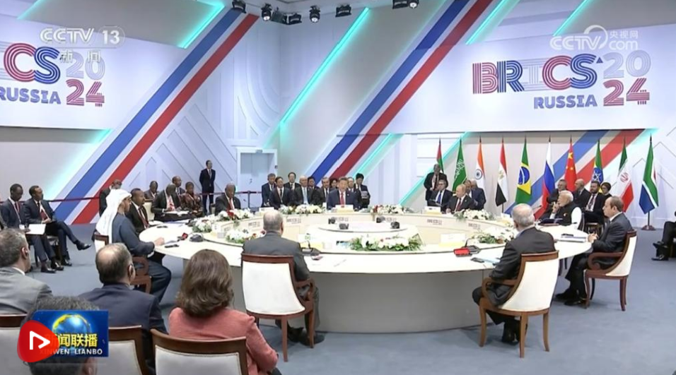 當(dāng)?shù)貢r間10月23日上午,金磚國家領(lǐng)導(dǎo)人第十六次會晤在喀山會展中心舉行。俄羅斯總統(tǒng)普京主持會晤。中國國家主席習(xí)近平、巴西總統(tǒng)盧拉(線上)、埃及總統(tǒng)塞西、埃塞俄比亞總理阿比、印度總理莫迪、伊朗總統(tǒng)佩澤希齊揚、南非總統(tǒng)拉馬福薩、阿聯(lián)酋總統(tǒng)穆罕默德等出席。