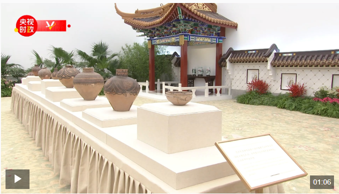 馬塔雷拉向習(xí)近平介紹了意方向中方返還的在其國(guó)內(nèi)文物市場(chǎng)繳獲的流失文物代表——馬家窯文化陶器。