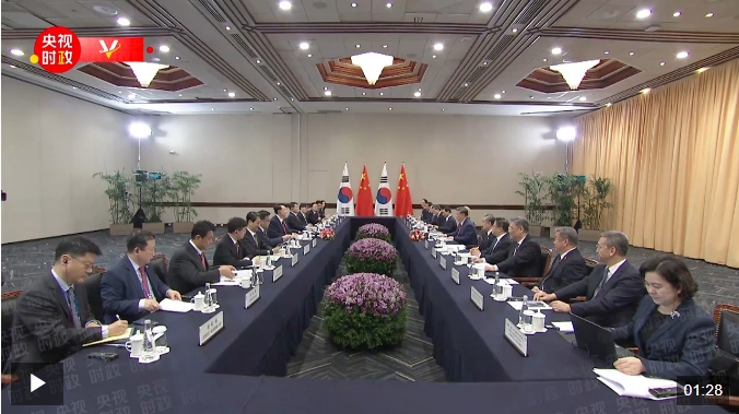 當(dāng)?shù)貢r間11月15日上午,國家主席習(xí)近平在利馬出席亞太經(jīng)合組織領(lǐng)導(dǎo)人非正式會議期間會見韓國總統(tǒng)尹錫悅。
