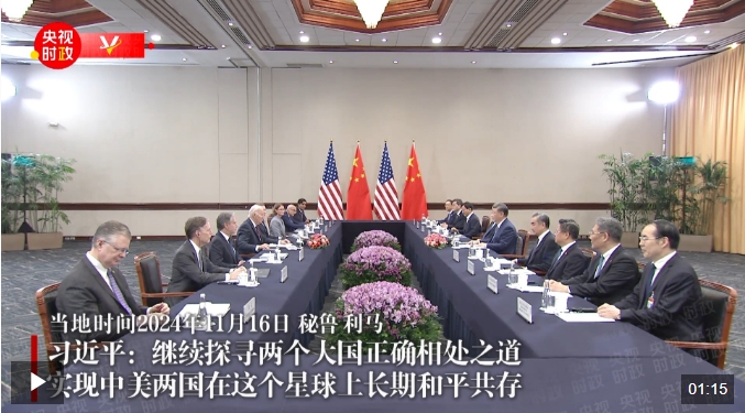 當?shù)貢r間11月16日下午,國家主席習近平在利馬同美國總統(tǒng)拜登舉行會晤。