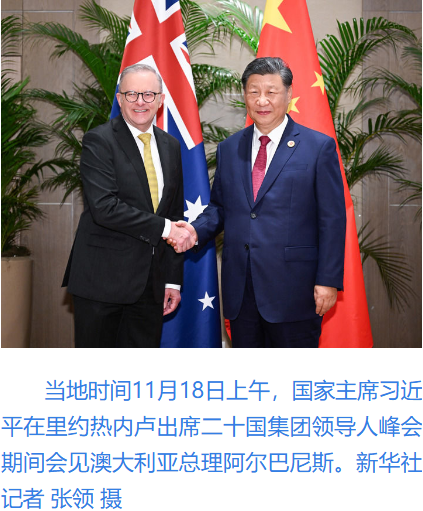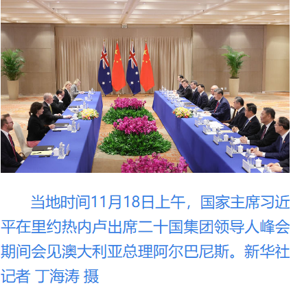 新華社里約熱內(nèi)盧11月18日電(記者朱超吳昊)當(dāng)?shù)貢r間11月18日上午,國家主席習(xí)近平在里約熱內(nèi)盧出席二十國集團(tuán)領(lǐng)導(dǎo)人峰會期間會見澳大利亞總理阿爾巴尼斯。