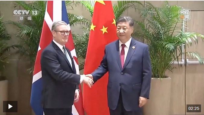 當(dāng)?shù)貢r(shí)間11月18日上午,國(guó)家主席習(xí)近平在里約熱內(nèi)盧出席二十國(guó)集團(tuán)領(lǐng)導(dǎo)人峰會(huì)期間會(huì)見(jiàn)英國(guó)首相斯塔默。