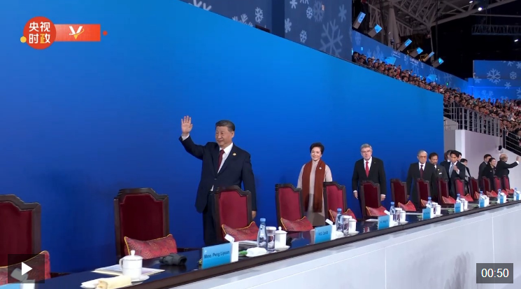 19時(shí)58分,在《和平——命運(yùn)共同體》的樂曲聲中,習(xí)近平和夫人彭麗媛,同國際奧委會主席巴赫、亞奧理事會第一副主席霍震霆等步入主席臺,向觀眾揮手致意。全場響起長時(shí)間的熱烈掌聲。