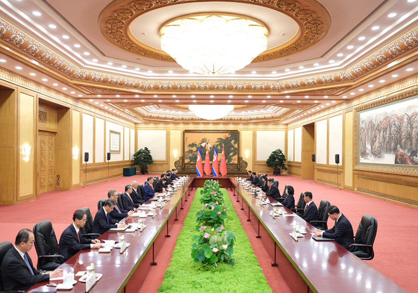 9月4日晚,中共中央總書(shū)記、國(guó)家主席習(xí)近平在北京人民大會(huì)堂同來(lái)華出席紀(jì)念中國(guó)人民抗日戰(zhàn)爭(zhēng)暨世界反法西斯戰(zhàn)爭(zhēng)勝利80周年活動(dòng)的朝鮮勞動(dòng)黨總書(shū)記、國(guó)務(wù)委員長(zhǎng)金正恩舉行會(huì)談。