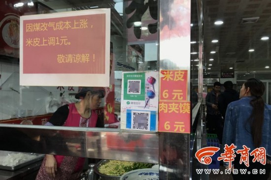 10月24日,有網(wǎng)友在華商論壇發(fā)帖:“秦鎮(zhèn)米皮、肉夾饃借煤改氣又漲成了六塊錢。”網(wǎng)友稱,“很久沒有去吃秦渡鎮(zhèn)的大米面皮了,近期路過橋西,尋了一家吃飯,吃一碗帶一碗夾了一個(gè)饃共計(jì)18元!問饃多少錢,涼皮多少錢?掌柜的說,肉夾饃、涼皮漲價(jià)了,涼皮六塊錢一碗,肉夾饃也漲價(jià)成了六塊!”網(wǎng)友稱,自己詢問時(shí)得知“因?yàn)槊焊臍?rdquo;,在“國慶期間開始漲價(jià)”。