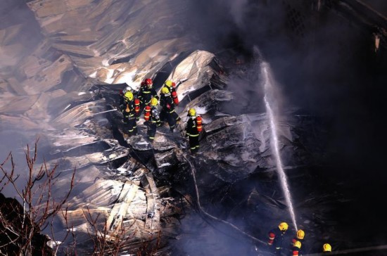 為了救火,除了疏散車輛,消防還出動高噴、大噸位消防車,設(shè)立多個陣地展開撲救,全力堵截火勢。上午10點,火勢得到控制。11點,明火被撲滅。隨后,一臺小型挖掘機進入倉庫,打通了庫房北邊的圍墻,為滅火提供了有利條件。下午5點半,消防車陸續(xù)撤離。