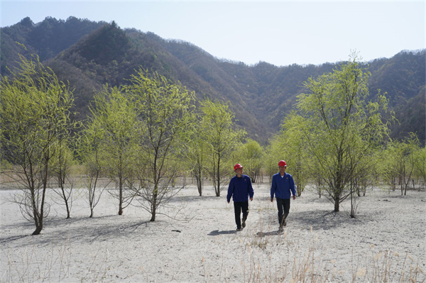 4月7日,金堆城鉬業(yè)集團(tuán)有限公司工作人員在經(jīng)過(guò)生態(tài)治理后的木子溝尾礦庫(kù)內(nèi)巡查。新華社記者 邵瑞 攝