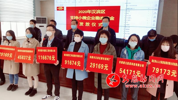 本網(wǎng)訊 (通訊員 朱駿 張敏)“漢濱區(qū)人社局這次發(fā)放的穩(wěn)崗補(bǔ)貼特別到位,切實解決了我們企業(yè)的現(xiàn)實困難,我們一定要?顚S,讓企業(yè)盡快恢復(fù)到疫前水平。”3月24日,在領(lǐng)取到9萬多元穩(wěn)崗資金后,陜西新智匯科技股份有限公司行政副總曾紅梅激動地說道。當(dāng)天,漢濱區(qū)共為42家小微企業(yè)發(fā)放穩(wěn)崗資金280多萬元。