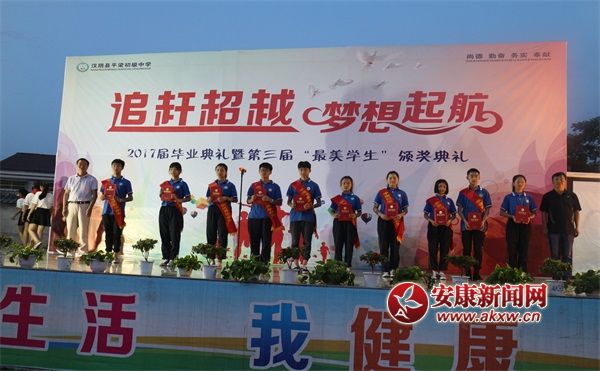 安康新聞網(wǎng)訊(通訊員 林愛銘)6月22日晚上,漢陰縣平梁初級(jí)中學(xué)在學(xué)校運(yùn)動(dòng)場舉行了2017屆畢業(yè)典禮暨第三屆“最美學(xué)生”頒獎(jiǎng)典禮。縣教體局、蒲溪中學(xué)、漢陽中學(xué)、平梁小學(xué)有關(guān)領(lǐng)導(dǎo),學(xué)生家長代表,平梁小學(xué)住宿生與平梁初中全校師生一同參加了本次活動(dòng)。