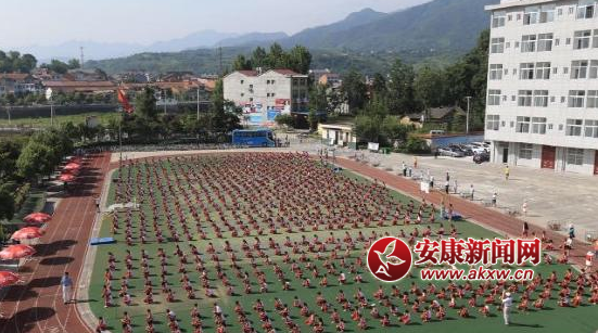 安康新聞網(wǎng)訊(通訊員 謝東 汪春妮) 6月4日,漢陰縣蒲溪鎮(zhèn)中心小學(xué)操場(chǎng)上,全校1000多名學(xué)生玩轉(zhuǎn)“動(dòng)感籃球操”,動(dòng)作整齊劃一,場(chǎng)面壯觀震撼。當(dāng)日,該校邀請(qǐng)嘉賓陜西可口可樂公司共同開啟心世界活動(dòng)儀式,校方希望通過籃球系列活動(dòng),彰顯學(xué)校體育特色,使每一個(gè)學(xué)生真正運(yùn)動(dòng)起來,在強(qiáng)健體魄的同時(shí),身心得到充分舒展。