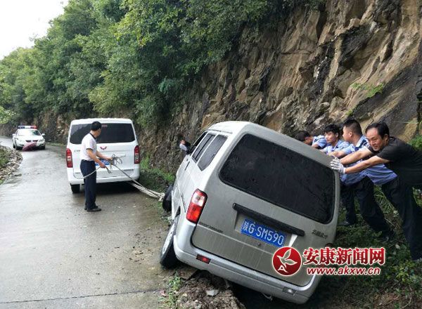 漢陰:雨天救助一側翻車輛