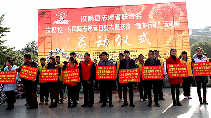 12月5日,在漢陰縣舉行的慶祝12.5國際志愿者日暨志愿扶貧“暖冬行動”活動周啟動儀式上,共收到來自縣級相關部門和愛心人士捐贈的350份“暖冬兒童禮包&rdqu……