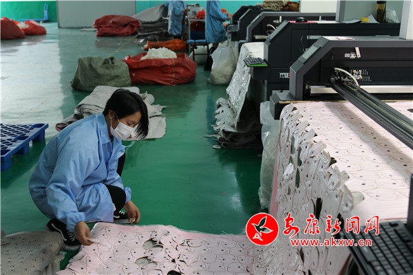 近日,嵐皋縣民主鎮(zhèn)富嵐工藝品有限責(zé)任公司內(nèi),包裝車間、殘疾人車間、裁剪車間呈現(xiàn)出一片繁忙的景象。扶貧車間工人高厚菊:“我來自新風(fēng)村,每個月有4千元左右的收入,就在家門口掙點錢也好,為家里添些零用錢。”今年31歲的高厚菊是一名貧困戶,她非常滿意這份工作很高興地說道。