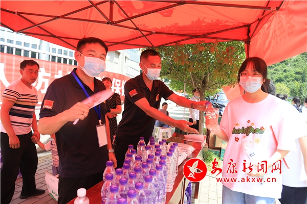 愛心送考,退伍老兵不遜色。早上6點(diǎn)左右,退役老兵志愿者們有條不紊地忙碌著,搬水、搭建臨時(shí)志愿服務(wù)站,在嵐皋中學(xué)校門口設(shè)置了愛心志愿服務(wù)點(diǎn),為考生和家長(zhǎng)服務(wù)。為了更好地服務(wù)考生,每一名退役軍人對(duì)車輛進(jìn)行了嚴(yán)格消毒和檢查。退役老兵志愿服務(wù)愛心接送車隊(duì)從縣城出發(fā),根據(jù)提前規(guī)劃的路線沿途接送城區(qū)內(nèi)的高考考生。