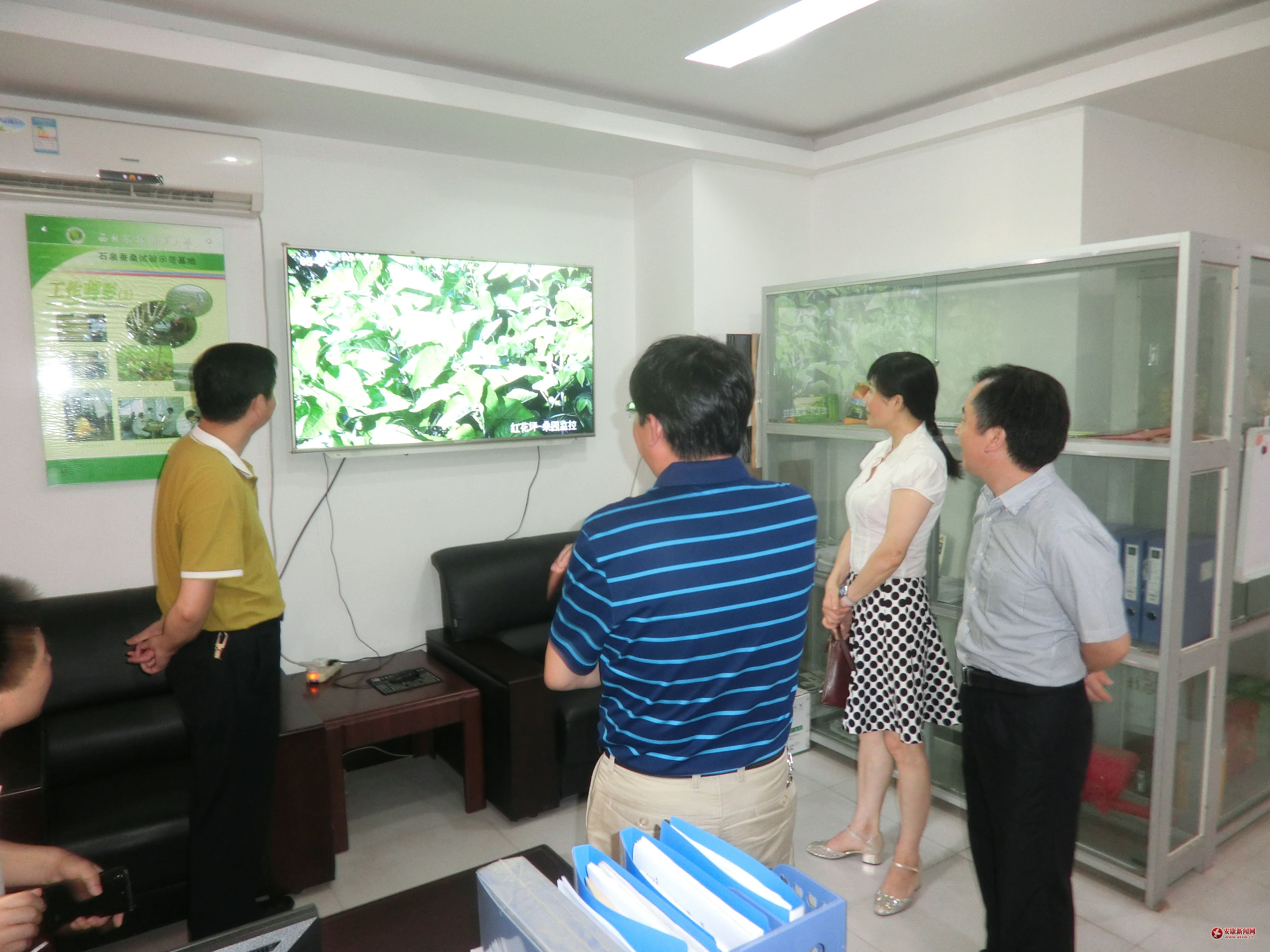 在遠(yuǎn)程網(wǎng)絡(luò)管理監(jiān)控服務(wù)智能系統(tǒng)操控室,周部長(zhǎng)一行領(lǐng)導(dǎo)觀看了西農(nóng)大石泉蠶桑試驗(yàn)示范基地肖乃康教授現(xiàn)場(chǎng)演示的小蠶共育室的高清監(jiān)控,看見第二批蠶子一動(dòng)不動(dòng)地正在睡四眠,通過無線溫濕度傳感器看見蠶室里的實(shí)時(shí)溫度、濕度和近一段時(shí)期蠶室里全天候溫度、濕度的變化情況,蠶桑中心主任韓燕明介紹說:通過這套遠(yuǎn)程網(wǎng)絡(luò)管理監(jiān)控服務(wù)智能系統(tǒng),就可以對(duì)4個(gè)基地的小蠶共育實(shí)時(shí)監(jiān)控,遇到蠶室溫度、濕度超標(biāo)隨時(shí)通知共育人員采取技術(shù)措施調(diào)整到標(biāo)準(zhǔn)范圍內(nèi),通過安裝在室外的高清監(jiān)控?cái)z像頭,可以360°無死角觀察桑園桑葉的生長(zhǎng)、病蟲害發(fā)生、桑園上肥、除草等情況,如果發(fā)現(xiàn)桑園病蟲害等異常情況隨時(shí)通知相關(guān)人員采取措施,避免桑園遭受損害。
