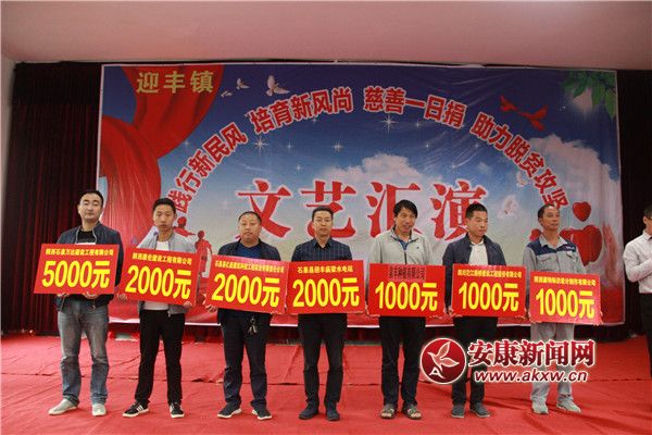 一首《讓世界充滿愛》拉開了活動帷幕,關(guān)心支持迎豐發(fā)展的各企業(yè)伴隨歌聲紛紛獻上愛心,以陜西石泉萬達建設(shè)工程有限公司為代表的12家愛心企業(yè)代表人依次登臺捐款,迎豐鎮(zhèn)鎮(zhèn)長譚可新代表鎮(zhèn)慈善協(xié)會接收捐款,此環(huán)節(jié)籌得捐款1.7萬元,愛心企業(yè)的慷慨解囊充分彰顯了這些企業(yè)的社會責(zé)任感。