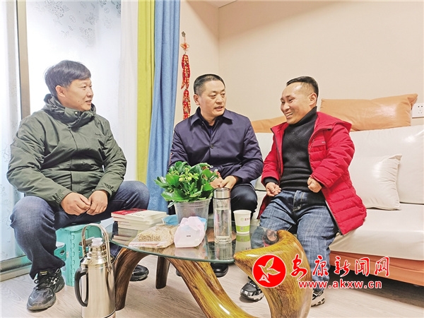 旬陽(yáng)市委書(shū)記陳紅星(中)看望慰問(wèn)殘疾人作家王庭德(右)