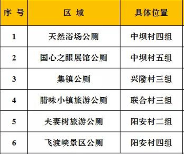 以下旅游公廁免費(fèi)對(duì)外開(kāi)放: